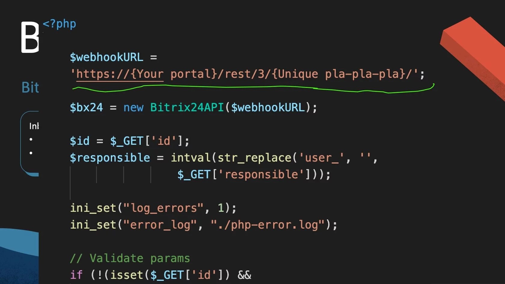 $webhookURL = 'https://[yourURLfromBitrix24]/';